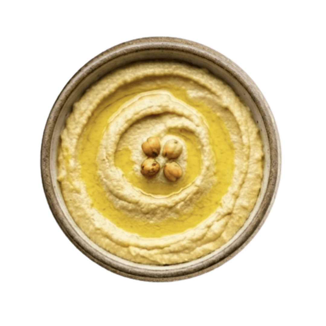 Hummus cremoso y lleno de sabor, preparado al estilo de la casa para disfrutar al centro.